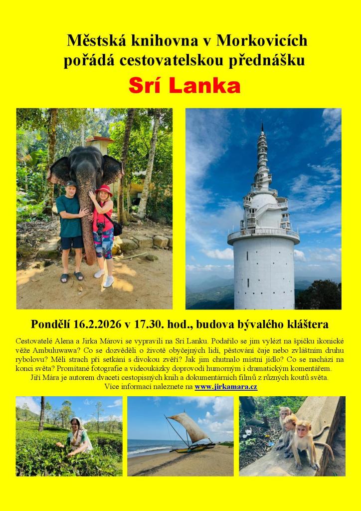 Cestovatelská beseda s Márovými 16. 2. 2026 v 17.30 Srí Lanka